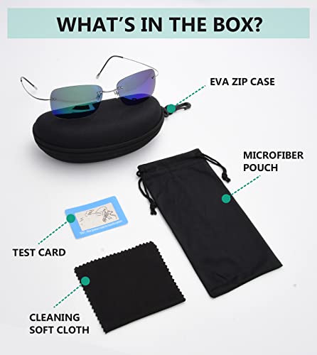 • [ WHAT YOU GET ] - Included a EVA zip case, microfiber pouch and cleaning cloth. Light and flexible titanium frame material for durability and comfortable long-term wearing. No hinges at the edge of the lenses, just bent wires from the side to go to your ears.