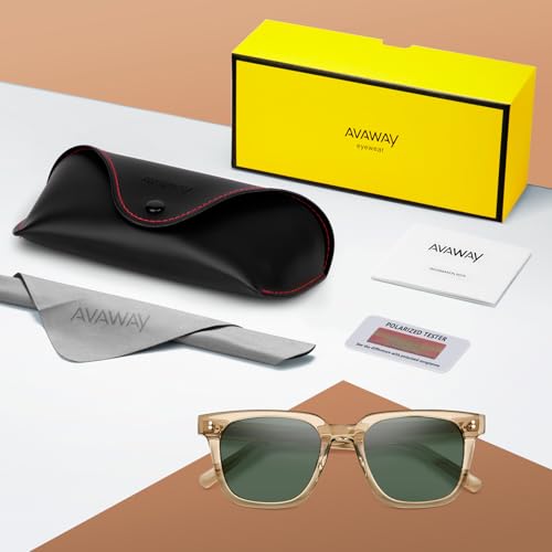 HOT ! AVAWAY Polarized Sunglasses for Men UV Protection, Square Acetate Frame Outdoor Driving Sun Glasses