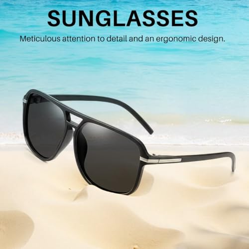Polarized Sunglasses for Men and Women, Lightweight Rectangular Sun Glasses, UV Protection Black Sunglasses 4