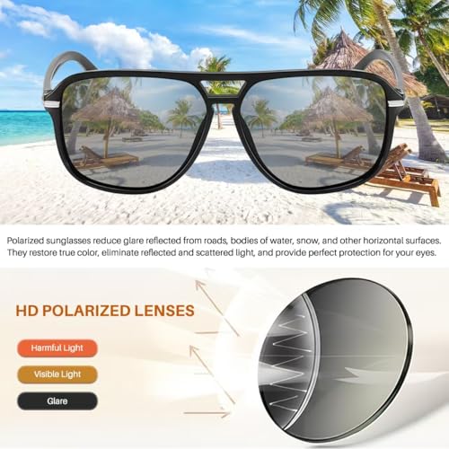 • UV Protection: The mens sunglasses polarized are made of high quality TAC polarised lenses, which effectively block 100% UVA and UVB rays, reducing eye damage from prolonged sun exposure. The lenses eliminate glare and scattered light, enhance colour contrast and restore true vision, so you can still be comfortable and clear in bright light.