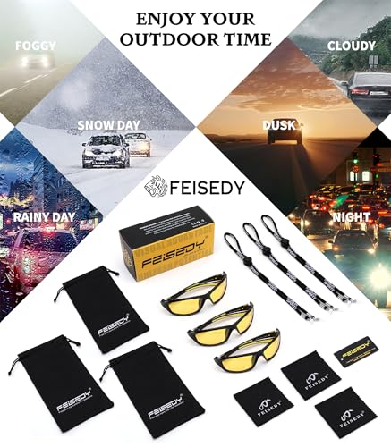 • Exquisite Packaging:Mens sunglasses polarized UV protection comes with mens polarized sports sunglasses*3, glasses pouch*3, glasses cleaning cloth*3, glasses strap*3, glasses case*1, polarization test card*1.FEISEDY sunglasses men are also gift packed, which will be great gifts for your family and friends!