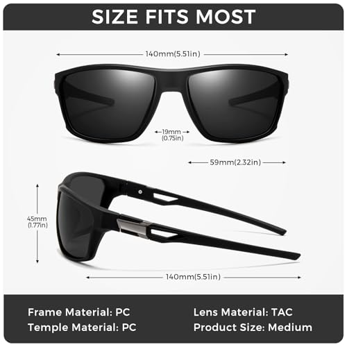 • High Definition Polarized UV400 Lenses: With anti-scratch lenses that eliminate glare and improve visual clarity, you can rely on these sunglasses to protect your eyes from harmful UV rays during both driving and sports
