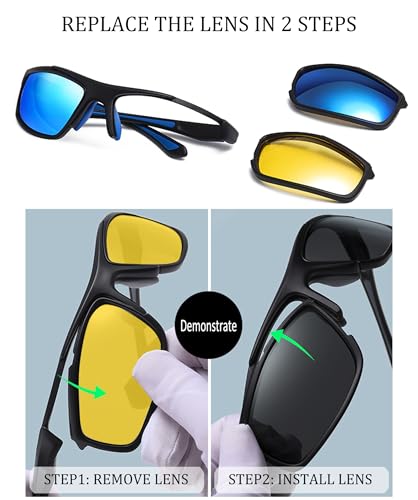 Polarized Night Driving Glasses Unisex NIght Cycling Glasses with Replacement Sunglasses Lens for Daytime 5