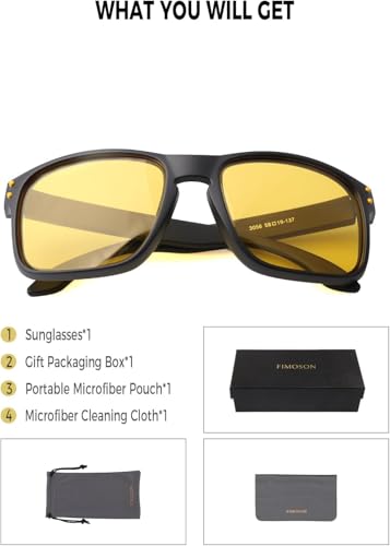 • PACKAGING & CUSTOMER SERVICE: Each pair of FIMOSON glasses includes microfiber pouch*1, microfiber glasses cleaning cloth*1, glasses box*1, designed to clean and protect your lenses from scratches and damage. FIMOSON sunglasses also come with exquisite packaging, making them a perfect, practical.Enjoy premium FIMOSON brand customer service that ensures a satisfying shopping experience with every purchase!