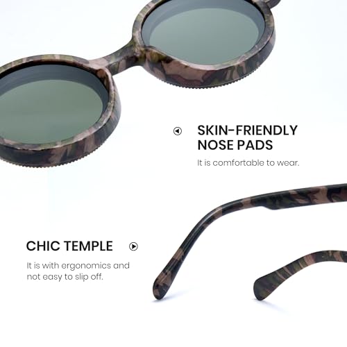 • Stylish Round Polarized Design: Elevate your look with our meticulously crafted round polarized sunglasses that combine fashion and function, offering a timeless aesthetic to complement various outfit styles seamlessly
