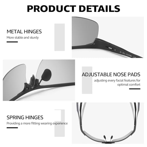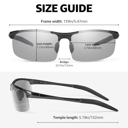 • Lightweight Mg-Al Metal Frame: These men's sunglasses feature a high-quality magnesium aluminum frame that is 30% lighter than ordinary metal sunglasses, ensuring a comfortable head feel when worn for long periods of time. Suitable for a variety of outdoor activities, such as vacation, cycling, fishing, golfing and hunting. The half-frame and sports style design can better fit your head and shape your face, making you look good. Simple but classic design, always in sync with fashion trends.