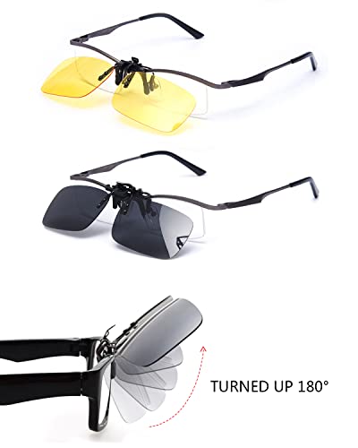 LUFF 2-Pack Clip on Day+Night Vision Polarized Sunglasses,Night Driving Safety 2
