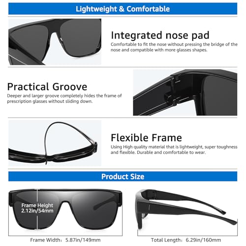 • Durable TR90 Frame: Our fit over glasses sunglasses are used TR90 frame, which is lightweight and durable. Super flexible to easily bend without broken. Hardly feel the weight when wear over your prescription glasses.