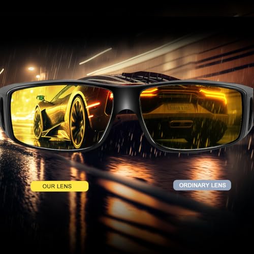 HOT ! Fit Over Glasses for Men, Wrap Around glasses Night Vision Glasses for Driving, 3PACKS