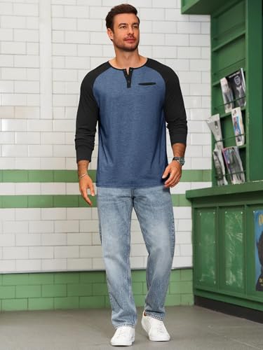 • Design: The men's casual t shirts are feature with classic henley neck and full raglan sleeves, one chest pocket and slim fit style. The color block design of the sleeves and collar adds a vintage style to this baseball shirt. Show a simple and classic style and it's the preferred fall shirts for you