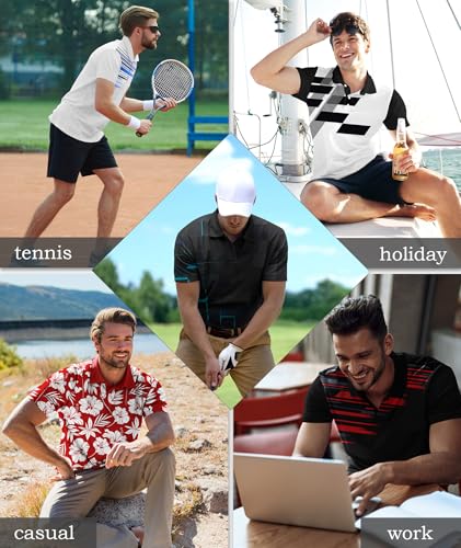 • EYE-CATCHING DESIGN:Stand out from the crowd with our original design print summer shirt. Featuring a classic 3-button placket and a ribbed collar that stays structured even after multiple washes , this polo shirt combines style and durability for a timeless look.