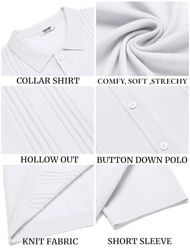 • PREMIUM FABRIC --- Men's casaul button down short sleeve shirts crafted with soft knitted fabric. Mens knit polo shirt is stylish and comfortable summer essential.
