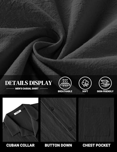 • 100% COTTON FABRIC: The COOFANDY men's button down shirt is crafted from pure, high-quality cotton. This short sleeve casual shirt combines the stylish texture of linen with the superior comfort of cotton, offering a better blend of fashion and functionality.A good choice for keeping cool on hot summer days