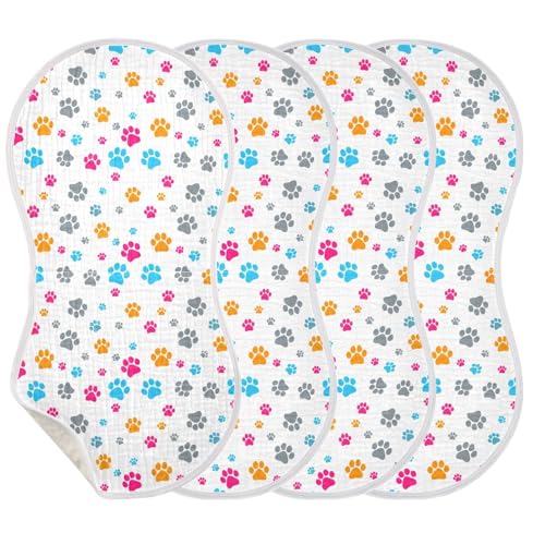 HOT ! Playful Paws Pattern Muslin Baby Burp Cloths - Super Absorbent and Soft Burping Rags - Cotton Burp Clothes Set for Boys and Girls, 1 Pack