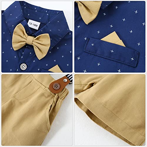 nilikastta Toddler Baby Boy Outfits Boys Gentleman Wedding Suits Set Summer Formal Short Shirt/Bowtie/Suspender 1-5T 3