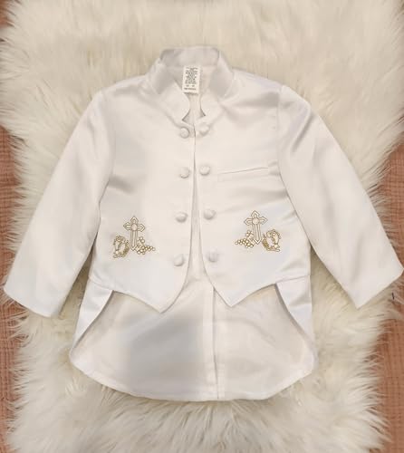 iGilrDress Baby/Toddler/Boys White Baptism Christening Mandarin Collar Tail 5 pcs Tuxedo with Cross Embroidery 1