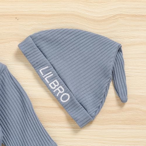 Newborn Baby Boy Fall Winter Outfits Zippered Romper Letter Embroidered Coming Home Jumpsuit with Hat Mittens 6