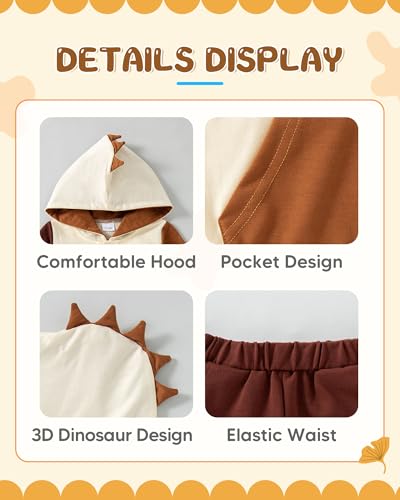 • UNIQUE DESIGN: Cute classic Plaid baby boy hooded sports suit with special 3D dinosaur design, wearing cute and fashionable. Loose waistband pants, your little boy will definitely look the most eye-catching in this outfit.