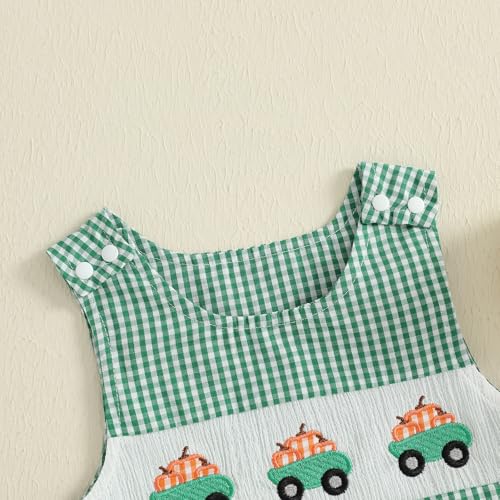 Baby Girl Pumpkin Embroidery Jumpsuit Halloween Sleeveless Round Neck Plaid Tank Romper 6