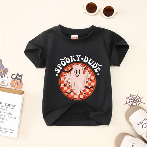 Ritatte Toddler Halloween Shirt Baby Boys Girls Ghost Graphic T-Shirt Funny Cute Spooky Dude Letter Short Sleeve Tees Tops 6