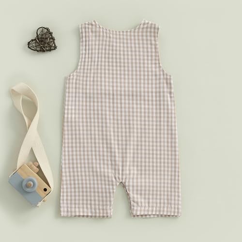 Baby Boy Summer Clothes Sleeveless Retro Plaid Romper Overalls Jumpsuit Shortalls Playsuit Outfits 4
