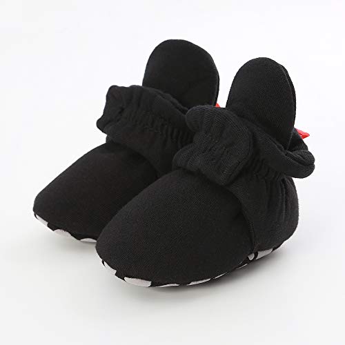 Baby Boys Girls Booties Non Skid Soft Sock Cotton Boots Infant Slippers Newborn First Walker Crib Shoes Black 13CM 4
