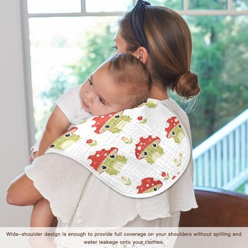 J JOYSAY Mushroom Frog Flowers White Baby Burp Cloths for Boys Girls Large 22''x11'' Cotton 4 Layer Baby Essentials for Drool one sizex2 6