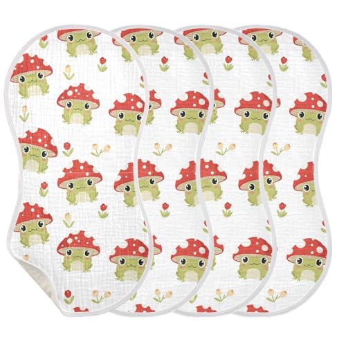 J JOYSAY Mushroom Frog Flowers White Baby Burp Cloths for Boys Girls Large 22''x11'' Cotton 4 Layer Baby Essentials for Drool one sizex2 4