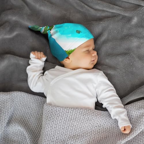 Newborn Baby Hat, an Island in The Ocean Print Soft Top Knot Beanie Cap, Cute Baby Headwear for 0-6 Months Black 1