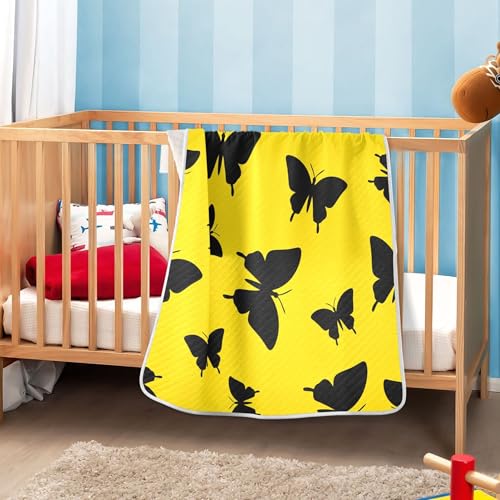 Burbuja Black Butterfly on Yellow Baby Blanket for Boys Girls, Nursery Soft Warm Swaddling Receiving Baby Blankets, 30x40 in Toddler Blanket 1