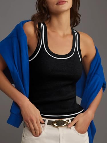 • Feature: Sleeveless tank tops for women, standout stitching, scoop neck, slim fit, ribbed knit tee shirts
