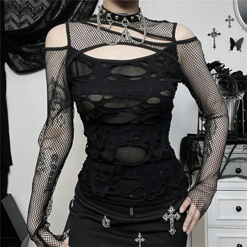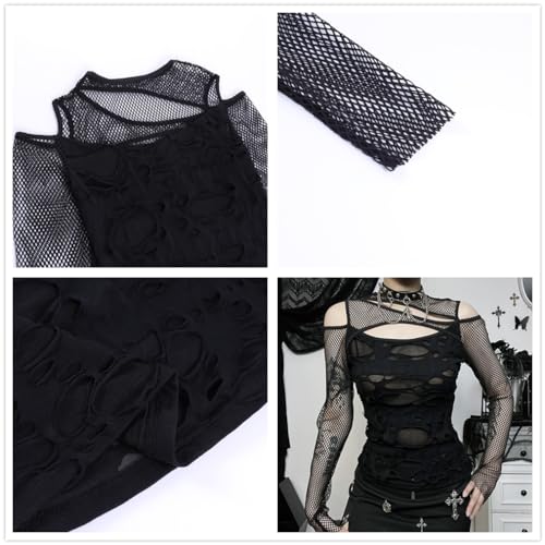 • The bold and eye-catching design, along with the rock and roll t-shirts for women, makes it a must-have for any punk fashion enthusiast. With its cutout details and fishnet long sleeve, this black alt shirt exudes a gothic vibe that adds an extra layer of uniqueness to your style.
