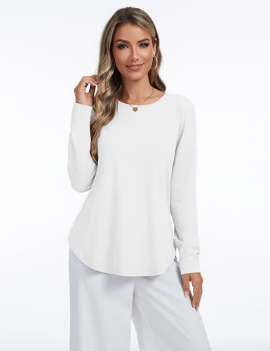 HOT ! YUCOLEN Long Sleeve Shirts for Women Loose Fit Crewneck Side Split Curved Hem Basic Casual Tunic Tops to Wear with Legging