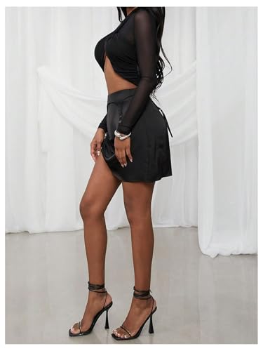 HOT ! SweatyRocks Women's Sheer Mesh Criss Cross Tops High Neck Long Sleeve Fitted T Shirt Crop Top