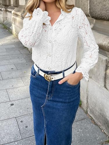 • FEATURES: S=US 4-6, M=US 8-10, L=US 12-14, XL=US 16 / See Through Lace Top / Long Sleeve Shirts For Women 2025 / Blouses & Button-Down Shirts / Flare Ruffle Cuffs / Stretchy / Sheer Top Fall / No Lining