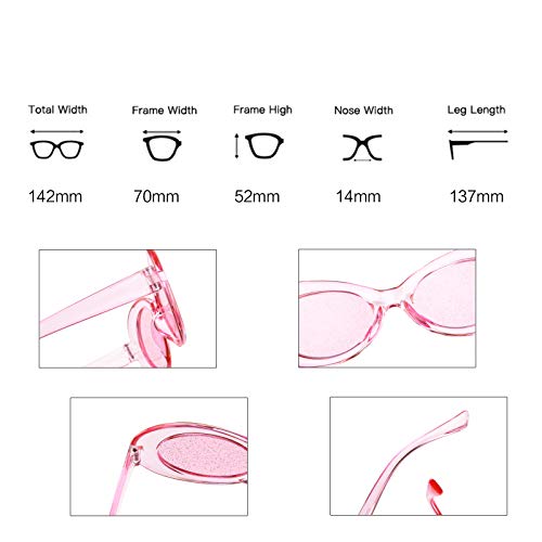 More information about Sunglasses Women Oval Sun Glasses Glitter Lenses Eyewear Candy Colorful Classic Transparent Frame Sunglasses UV400 Retro Pink