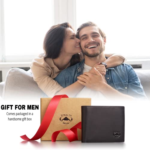 HOT ! Stealth Mode Leather Bifold Wallet for Men - RFID Blocking, 11 Card Slots, Gift Box