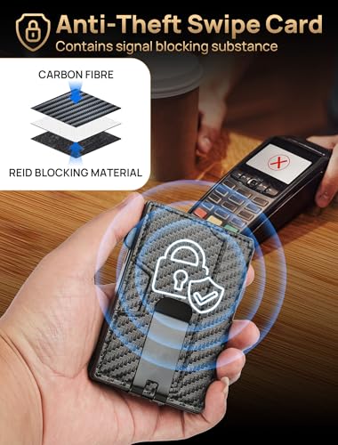 • [Innovative Design] This sleek wallet for men features a carbon fiber exterior paired with an aluminum alloy card holder, offering a modern and stylish look. The magnetic closure ensures easy access, while the pop-up card mechanism allows for quick and effortless card retrieval. Designed for efficiency and convenience, this pop up wallet is perfect for everyday use