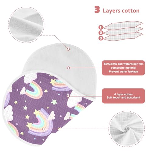 xigua Rainbows Muslin Baby Burp Cloths Set of 4, Super Soft & Absorbent Burping Rags, Cotton Burp Clothes Shower Gift for Newborn, Baby Girls and Boys 3