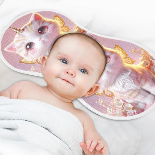Muslin Burp Cloth for Baby 2PCS Cute Pink Cat Super Absorbent Burping Cloths, Bibs for Newborn Boys Girls 6