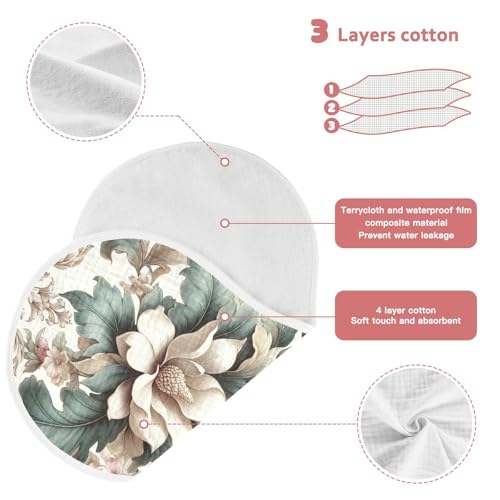 Muslin Burp Cloth for Baby 4PCS Retro Magnolia Flowers Super Absorbent Burping Cloths, Bibs for Newborn Boys Girls 5
