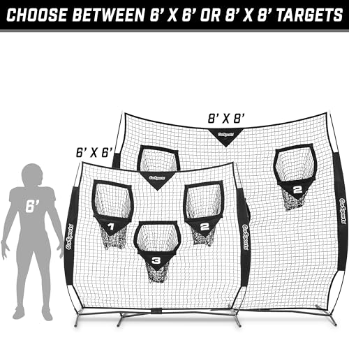 GoSports Football Throwing Net - 8 x 8 ft or 6 x 6 ft Nets - Choose Black or Red 6