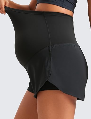 CRZ YOGA Women 2 in 1 Maternity Workout Shorts Over Belly 3" - Dolphin Soft Athletic Running Casual Pregnancy with Pockets 3