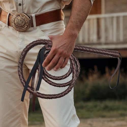 HOT ! Brown Whip for Halloween Costume - 6.5 Feet PU Leather Whip, Cat Woman Lion Tamer Cowboy Costume Accessories for Adult Women Men Cosplay