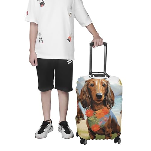 HOT ! Dachshund Tropical Painting Art Luggage Cover, Washable Elastic Suitcase Cover Protector Fit 18-32 Inch Luggage