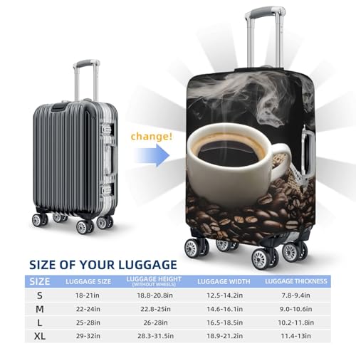 HOT ! Coffee Beans & Cup Elastic Travel Luggage Cover, Washable Spandex Suitcase Protector, Anti-Scratch Fits 18-32 Inch