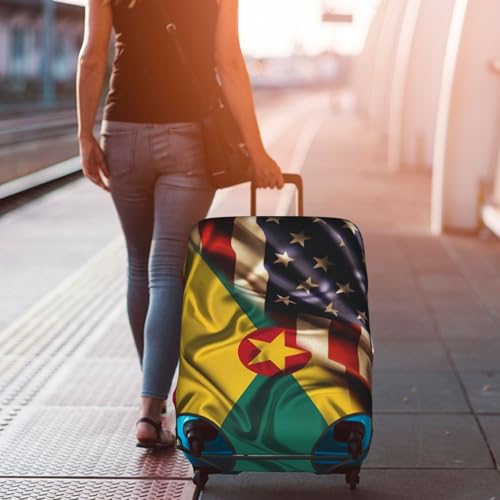 Travel Luggage Cover Combined Grenada And Usa Flag Fashion Washable Baggage Suitcase Protector Fit For Luggage X-Large 7