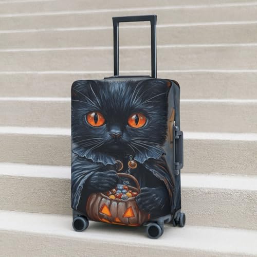 Halloween Black Cat Holding Candy Bag Elastic Travel Luggage Covers Dustproof Scratch-Resistant Suitcase Protector Fit 22-24 Inch 6