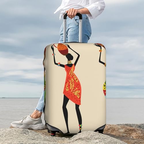 HOT ! African Women Print Luggage Cover For Suitcase,Washable Elastic Travel Suitcase Protector With Zipper Closure And Bottom Buckle – Fits 18-32" Luggage-Large