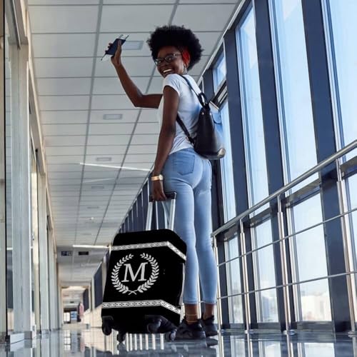 Suitcase Cover Black Luggage Protector White Wheat Design Letter P Washable Travel Baggage Covers Fit 22-24 Inch Luggage 6